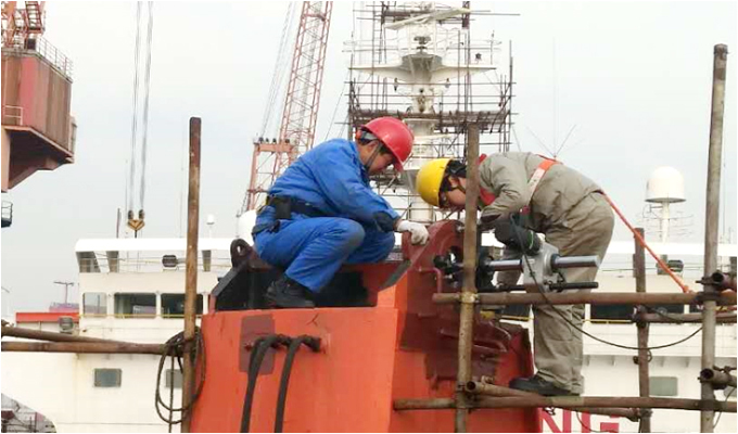 我司擁有小型化的現(xiàn)場(chǎng)鏜孔設(shè)備,針對(duì)舊船維修經(jīng)常遇到的諸如吊臂鉸接孔、艙蓋鉸接孔、油缸鉸接孔、等運(yùn)動(dòng)關(guān)節(jié)部位,可以進(jìn)行迅速有效的修復(fù)。
