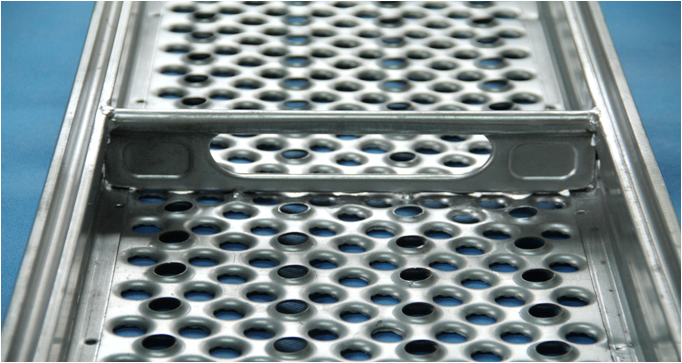 跳板反面筋板設(shè)計(jì)帶有抓手孔,減少重量的同時(shí)方便產(chǎn)品的抓取,孔四周做好卷邊,防止長(zhǎng)時(shí)間勞動(dòng)對(duì)手指關(guān)節(jié)的損傷。