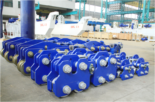 用于小型船的軸系的安裝,每條船配數(shù)只這種設(shè)備,方便軸系的轉(zhuǎn)運及安裝,圖示產(chǎn)品入籍GL。