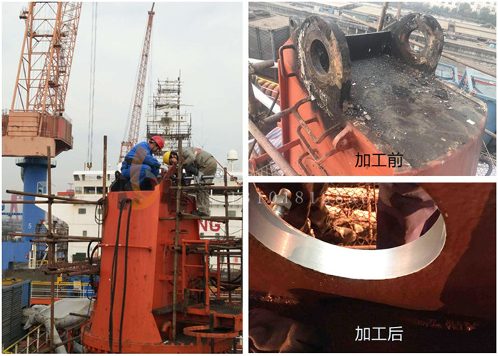 近日,我司施工三隊在某船廠完成標題所述修復工作,全船共計四臺克令吊,整個加工時間兩天全部結束。